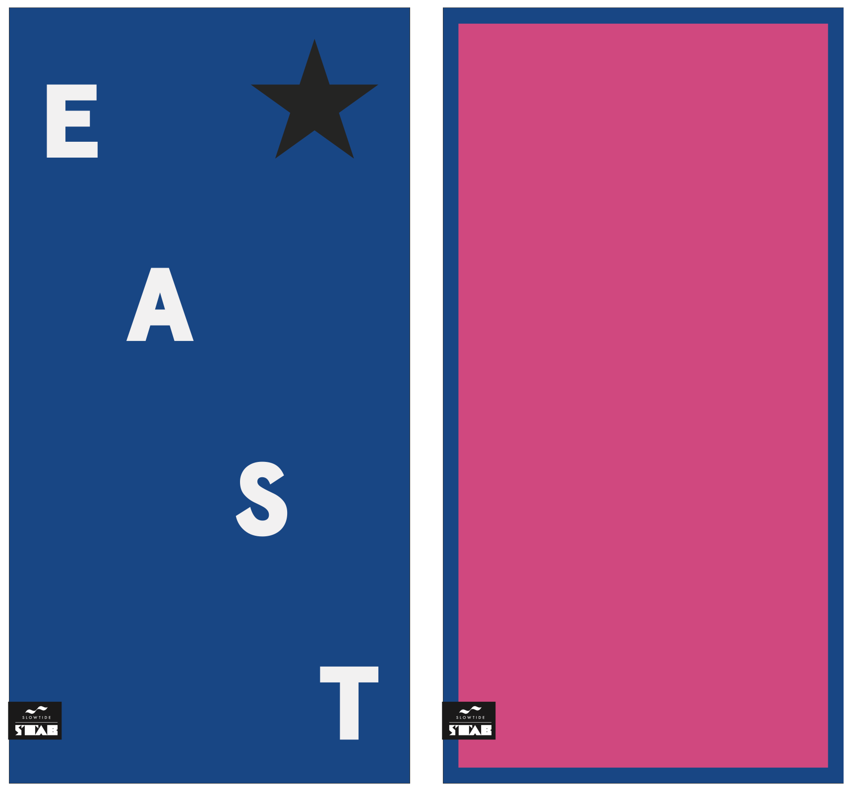 E.A.S.T. on a slant, with a star, on a Slowtide towel.